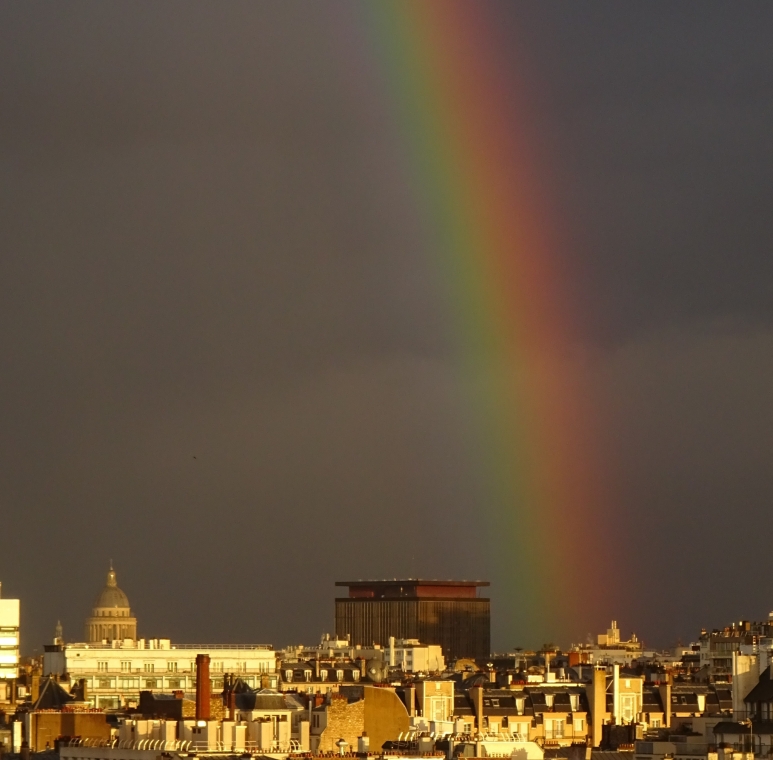 J'ai toujours beaucoup aimé les arcs-en ciel, leur symbolique biblique et amicale, leur beauté dans la nature où pluie et soleil mêlés, l'après-orage, les sept couleurs se juxtaposent et légèrement se fondent en bordure...